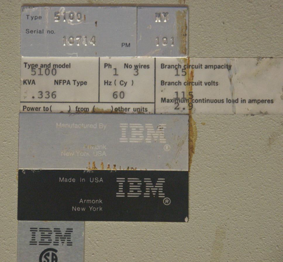 The 5100 was available in several configurations, which included native BASIC, APL or BOTH, and RAM configurations from 16k to 64k. The machine in my collection is a "low-end" 5100, having only the BASIC language ROS, and 16k of random access memory.