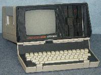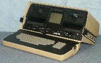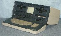 This is the "cutest" Osborne - it is much smaller than the Osborne-1/2, yet has the larger (7") screen. The keyboard is permanently attached, and folds down to serve as a riser for the front of the machine.