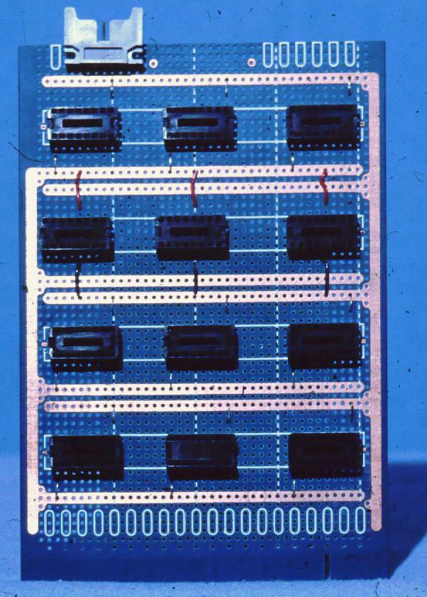 Unlike most other homebuilt computers, this machine does NOT use a microprocessor IC - the CPU is entirely home built from TTL logic, with the highest integration components being four 74281 TTL ALUs.