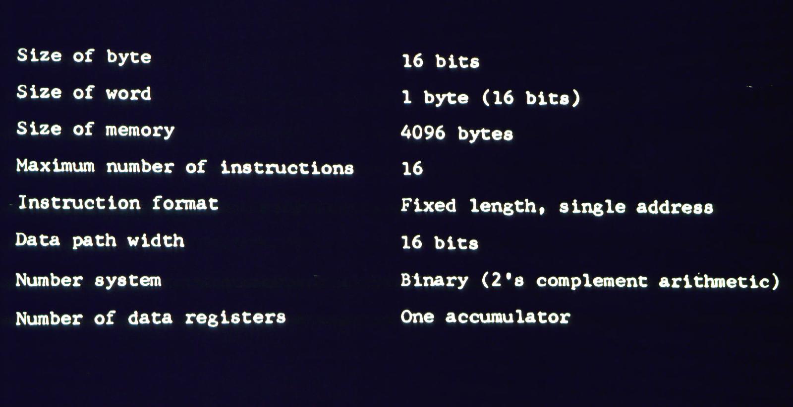 This computer came into existance as the result of a set of course notes at the University of New Brunswick (Fredricton N.B. Canada) written by L. Johnston describing a "Primitive Computer". In 1977, G. Morrison and S. Kyle, two students graduating in the class of 78 decided to construct the machine as their final project. Nearly a year in construction, the machine worked, and was successfully demonstrated running a small program.